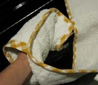 Ich liebe diese Ofenhandschuhe. In beide Seiten reinschlüpfen und das Blech aus dem Ofen holen. Keine Verbrennung an der Innenseite vom Unterarm und kein Suchen, wohin mit dem einen Topflappen, wenn man zum Löffel greift.